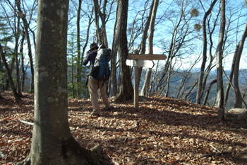 再び謎山の頂上に到着・・・道標新しくしてくださいよ〜都知事。