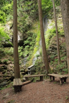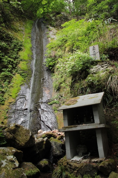 滝の脇にはコンクリート製の祠のようなものが設置されていました。