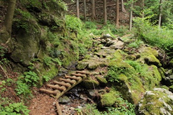 さあ、次へ行きますよ。 三度、右岸から左岸へ渡り。急な斜面を登って行きます。