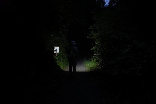 ヘッドライトに照らされた登山道は立体感に乏しい。