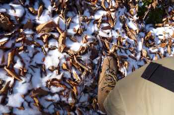 雪と落ち葉のミックス。
