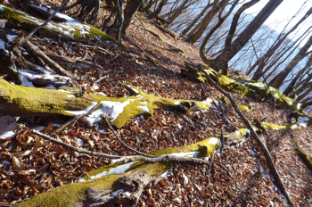 ※人形山の場所は説明がすごく難しいですね。ミズナラの巨木から150m程離れた位置にあります。 周辺は尾根の幅がやや広く、その中ですこしだけ膨らんだ丘の上に人形山の表札がかかっています。GPSがあれば簡単なんですけどね。