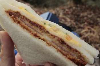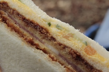 この真っ白なパンに挟まった、ハムカツと、タマゴサラダの見事なハーモニー。。