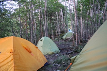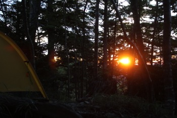 やや肌寒い朝。テントのジッパーを開けて顔だけ出すと爽やかな朝日。