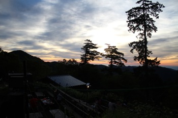 でも、せっかく早起きしたんだから、と思って山荘の前で朝焼けを撮影したりする。