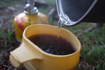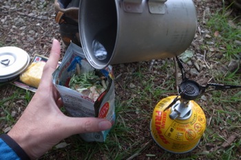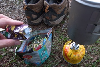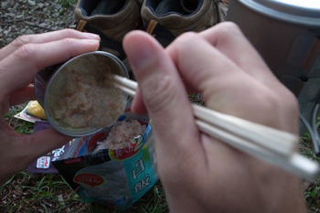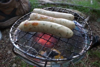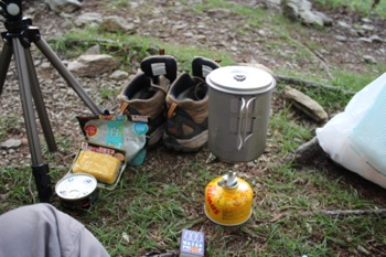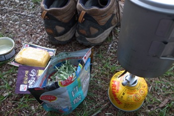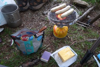 お腹が空いてきたので、テントの前で軽く調理開始。