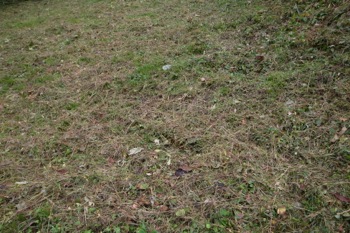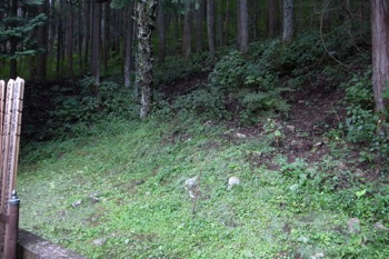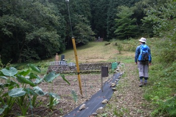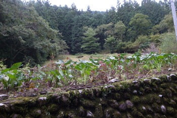 畑の近くにはお墓が2つあって、さらにその奥に森があります。
