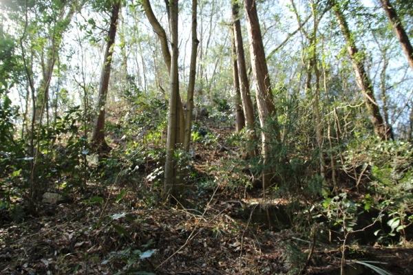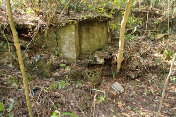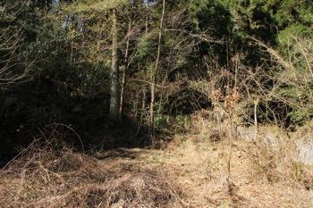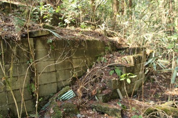 空き地奥側の山側の斜面の低い位置に、建物の基礎のような、何かが残っていました。