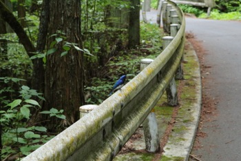 青い鳥がガードレールの上で、(ぼけ〜〜)っとしていました(笑)