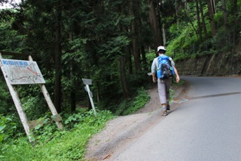 ここからしばらく、アスファルトの道を歩いて行きます。 左側には沢が流れていて、瀬音を感じつつノンビリと歩いてゆきます。