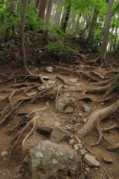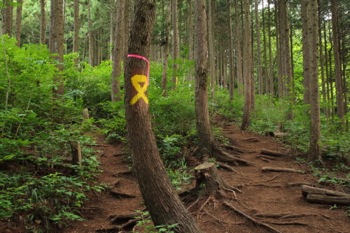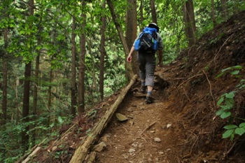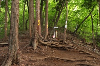 この道標の場所から、沢も遠くなってしまいます。 本格的な上り坂のはじまりです。