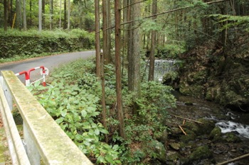 まずは、つるつる温泉の正面から橋を渡って道路へ出ます。