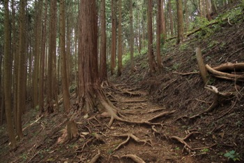 上の方へ登って行くと、道がだんだんえぐれてきました。