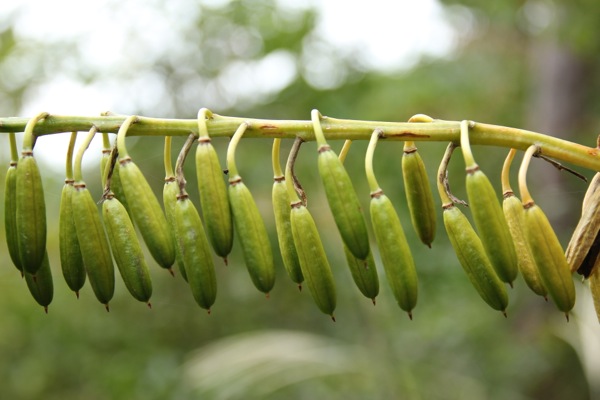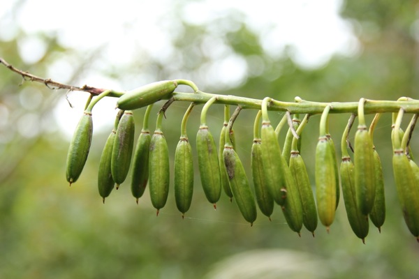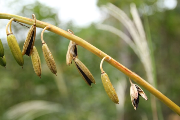 そして、下の方に行くと、実がはじけて種が出てきている。