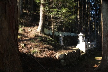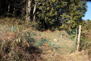 ネットの脇を抜けると※、すぐ正面にお墓があって、左脇に山道が伸びていました。