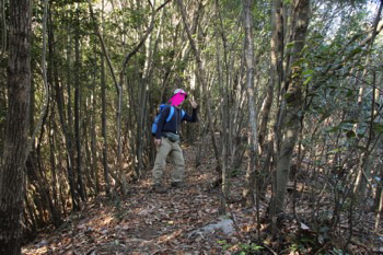 尾根伝いにしっかりとした踏跡を感じる。なかなかの急坂だが、民家からの目も気になるので速やかに高度をあげたい。