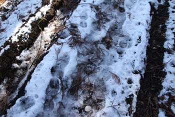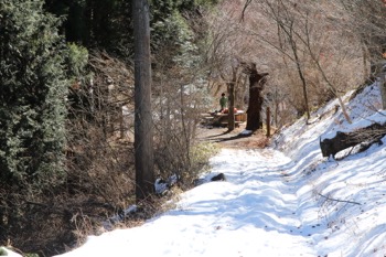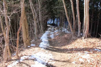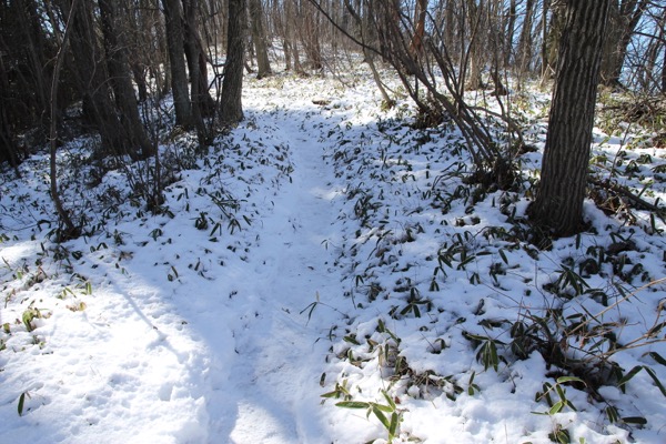 しばらく歩くと・・雪が減る。