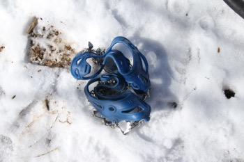 とりあえず、ここからは雪が多いようなので、ワンタッチのアイゼンを出して装着します。