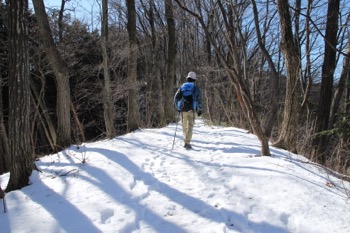 大して厳しくも無い、平坦な尾根歩きです。トレースを追って先へ進みます。