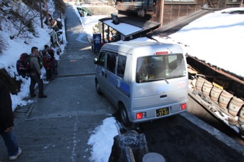 山の上だけど車が走ってくる。