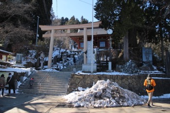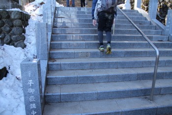 御岳山へ向けて歩きます。足元の雪は良く踏まれて凍ってカリカリになってしました。