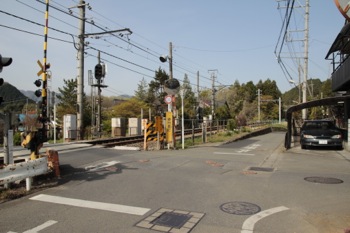 真っ直ぐ進むと踏切が見えてきますが、なおも真っ直ぐ進みます。