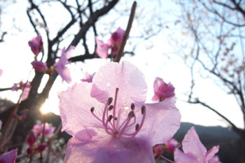 逆光でキラキラ光る梅の木。