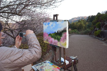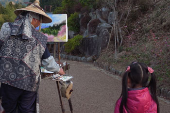 イーゼルを持ち込んで洋画を描いているおっちゃんがいました。