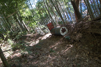 竹林の中にはバレルトラップが設置してあった。