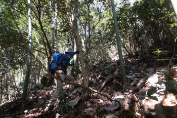 道は無いのですが、竹林の斜面は地面はしっかりとしていて、比較的歩きやすかったです。