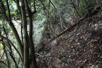 石垣の右に踏み跡が見えていますので、そこを歩いてさらに上へと歩きます。