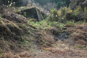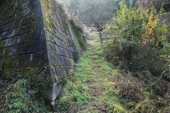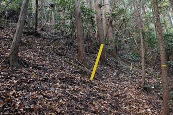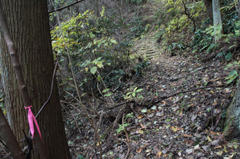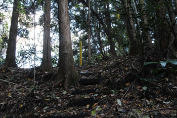 上の方に石垣が見えています(ここを登って進む)