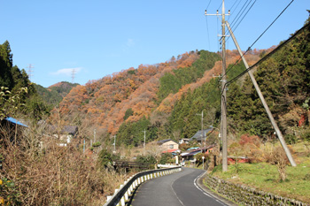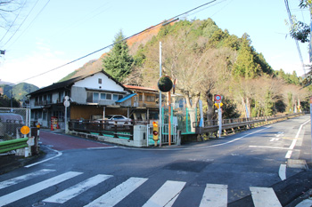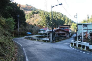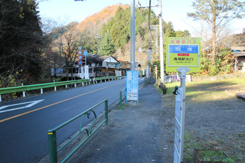関場バス停に到着(正面に要倉尾根が見える)