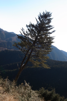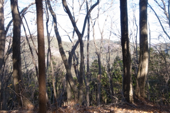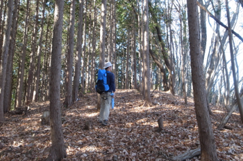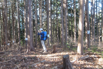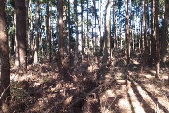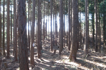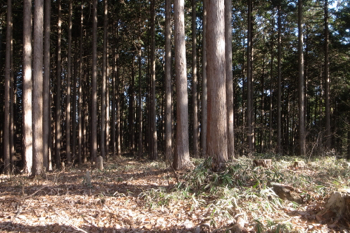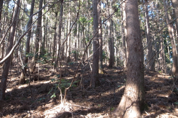 四方は針葉樹の植林で、冬なのですこし遠くが見通せはしますが、夏だと展望は無いと思います。