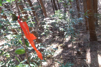 要倉山から高茶山まで登山道は続いてはいるものの、やや道がわかりにくい。しかしそういう場所には赤テープが貼ってあって、 それを頼りに進めば間違いなく進める。