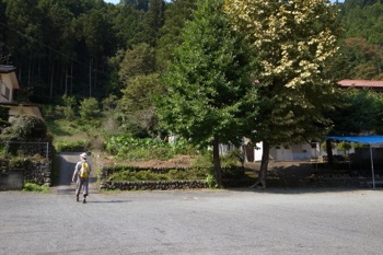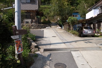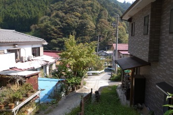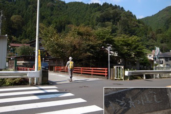 橋を渡り、集落の方へ進みます。