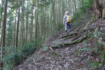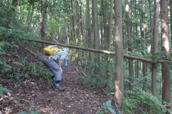 斜面で土がむき出しの場所は慎重に通過する。