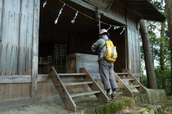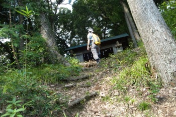 神社の裏手にある小さい祠の脇を抜けて行く。