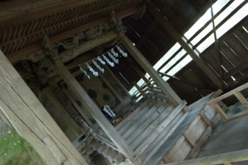 さて、この神社の側面にまわると、隙間があってそこから本殿を見れました。