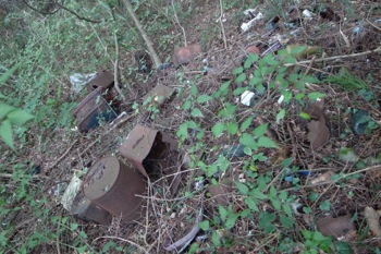 右の道を進むと左手にゴミが。