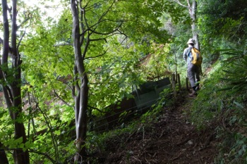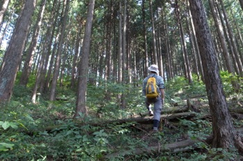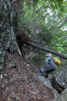 登山道を外れ斜面に分け入る。