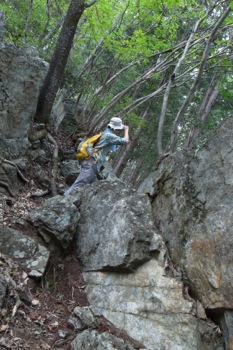 この辺りから登ってみよう・・と決めて登りやすそうな場所から、