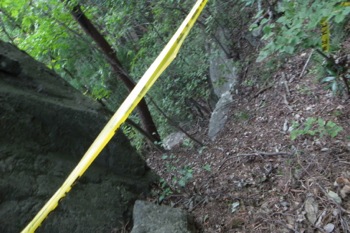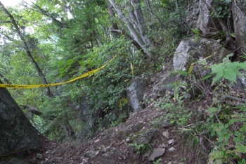 進んで行くとロープ。