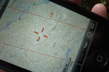 GPSで現在地を見ると、登山道からかなり外れている事がわかる。