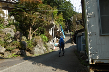 と、言うわけで、元の道へもどって橋を渡り、橋を渡った場所からすぐに右折します。