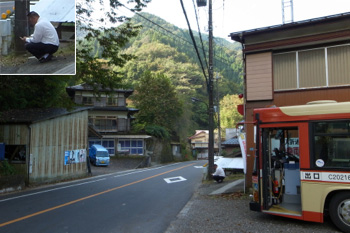 余談ですが、バス停の斜め向かいに山の方へ登る車道がありまして、