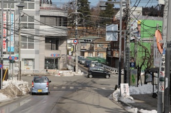 駅の正面からまっすぐ、大きい通りに出ます。