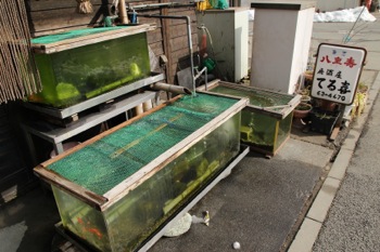 居酒屋の前で魚が泳いでいた。