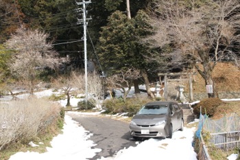 梅の畑を抜けると・・。すぐに右手に神社が見えてくる。