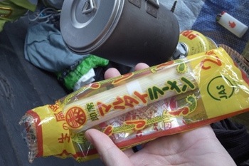 箸を忘れて、そのへんに落ちていた枝で食ったラーメン。